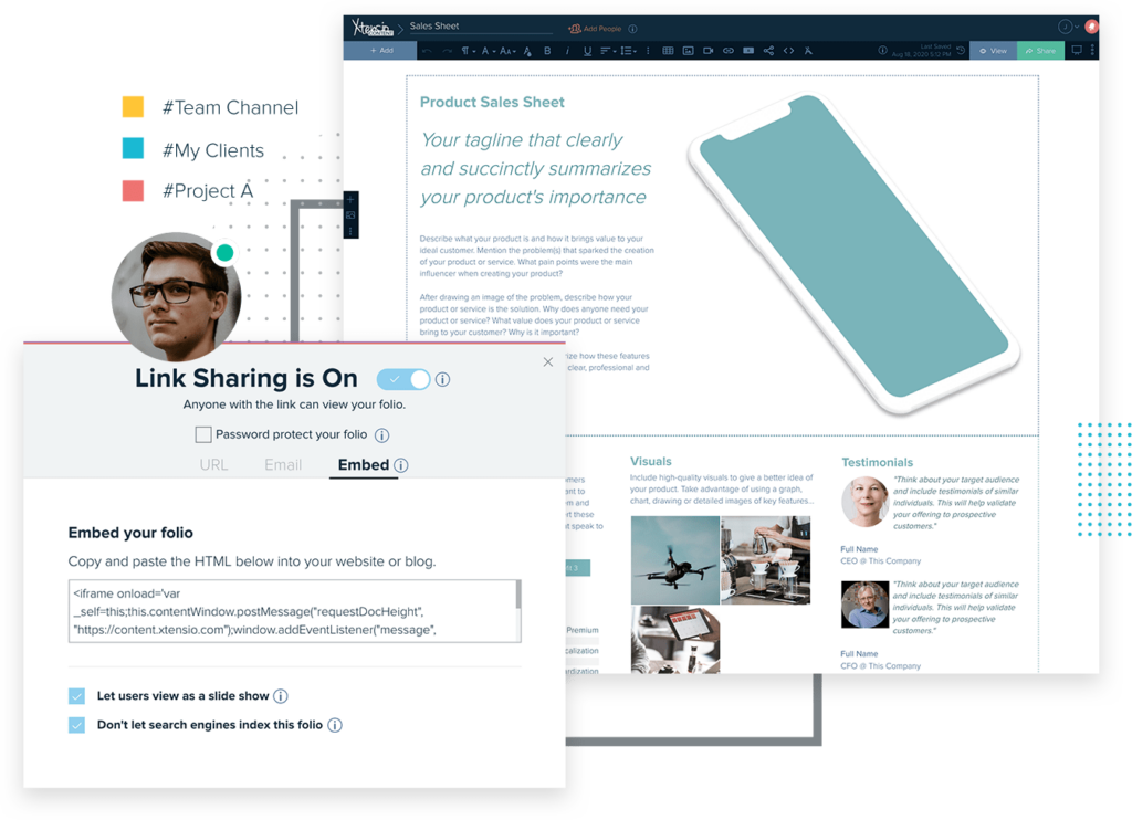 Xtensio comes packed with 100s of templates and editable examples for every stage of your sales cycle. Get started with a fully-customizable template. Or start from scratch and build your own.